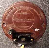 From the rear the two identification features are the combined handset and starting knob, in bakelite for this movement, which is situated close to the connector, and the connector itself, which is able to swivel a little for convenience in assembly.